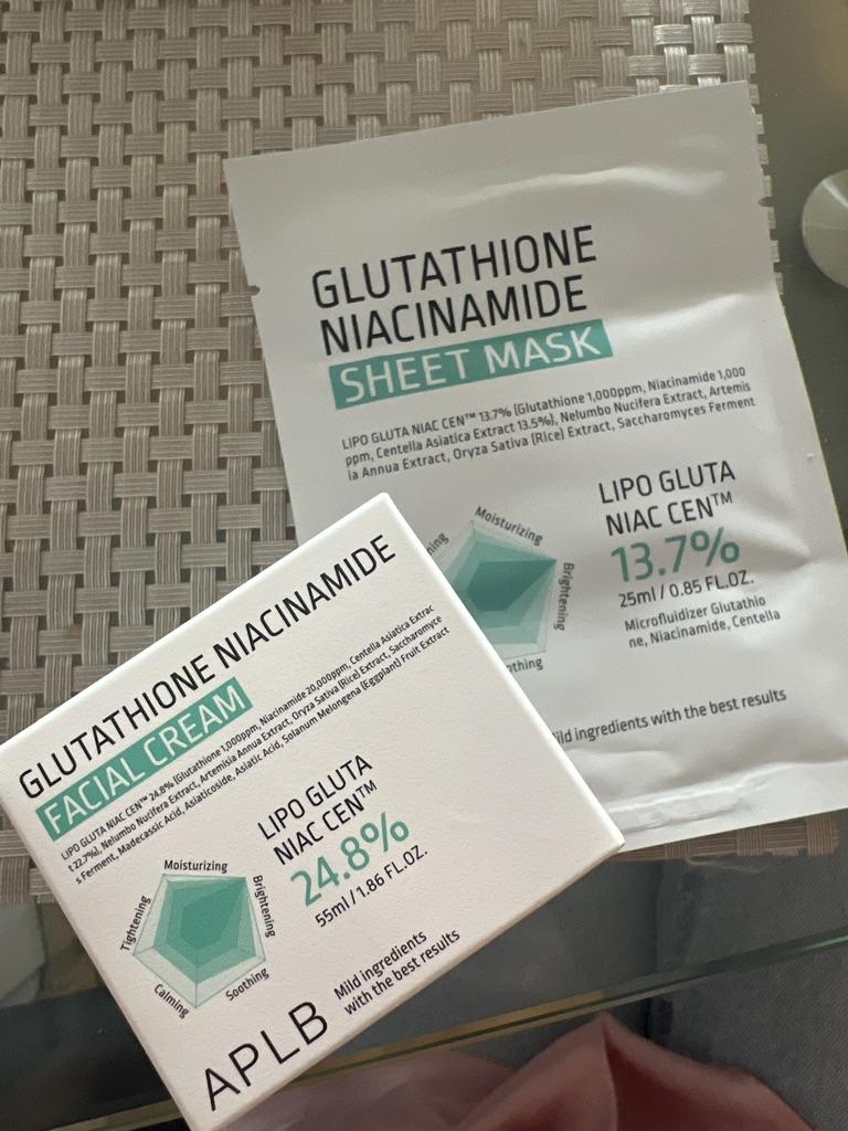 BASISZUSAMMENFASSUNG: Glutathion-Niacinamid-Gesichtscreme / LIPO GLUTA NIAC CEN 24,8 % (Glutathion 1.000 ppm, Niacinamid 20.000 ppm, Centella Asiatica-Extrakt 22,7 %), In Kombination mit dem Centella 3x Complex und patentierten Inhaltsstoffen ist es eine Premium-Gesichtscreme, die der Haut reichhaltige Nährstoffe und tiefe Feuchtigkeit spendet und sie lebendig und hydratisiert macht.