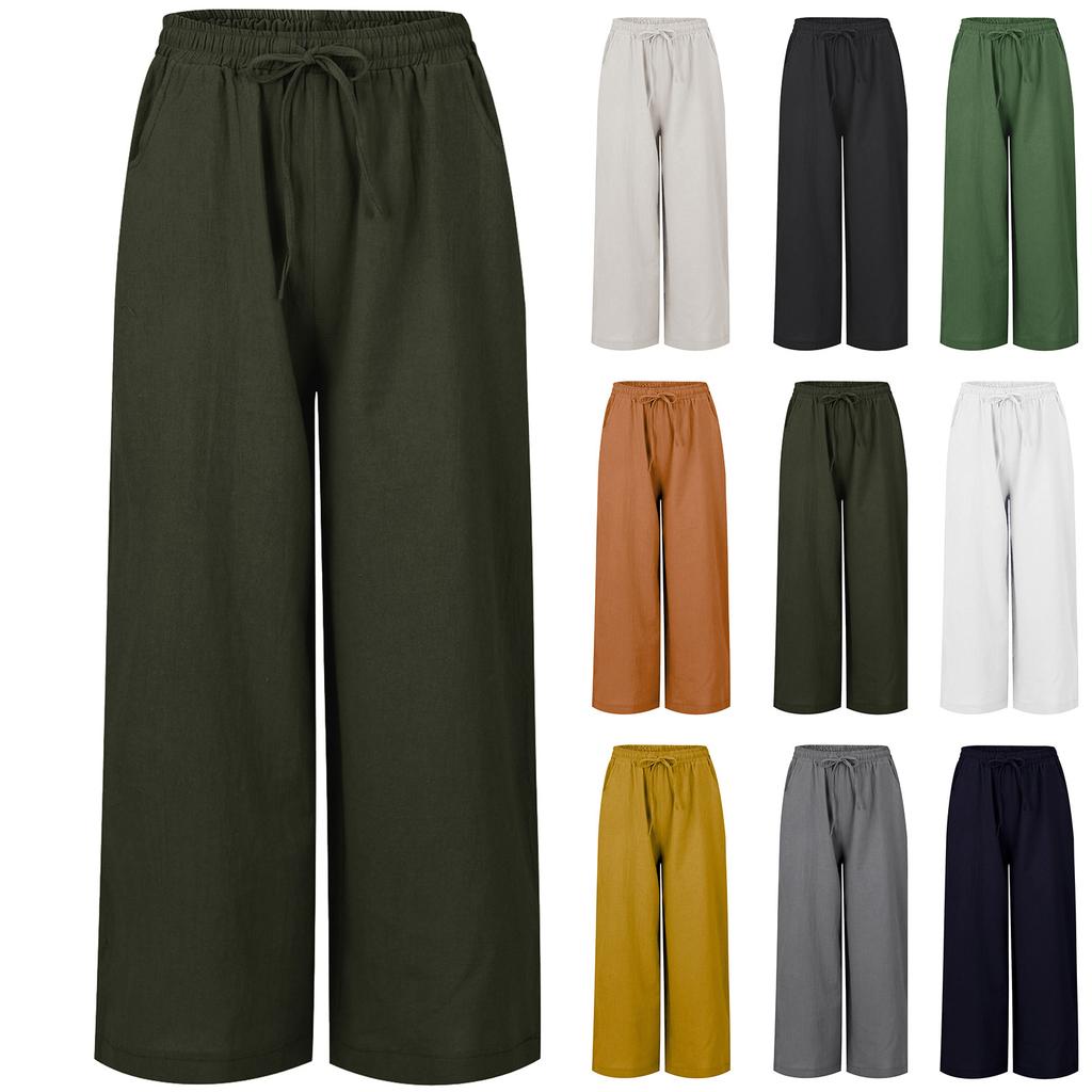 【Eigenschaften】 Lässige Sommer-Baumwoll-Leinenhose für Frauen, weites Bein, elastischer Bund, Kordelzug, Bindeknoten vorne, zwei Seitentaschen, leicht anzuziehen, klassische einfarbige, locker sitzende. Weiche Hose. leichtes, gerades weites Bein, verstellbarer Kordelzug, Bodenlänge, zu tragen und für die meisten Menschen geeignet.