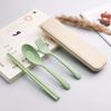 3-in-1-Geschirrset aus Weizenstroh, Gabel, Löffel, Messer, Set für Reisen, Picknick, Camping, mit Etui, tragbares Geschirr, Besteckset