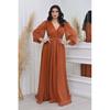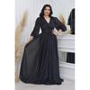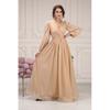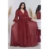 Zweireihiges Abendkleid mit Kragen, Gürtel und Ballonärmeln aus glitzerndem Tüll TE Settür Abendkleid