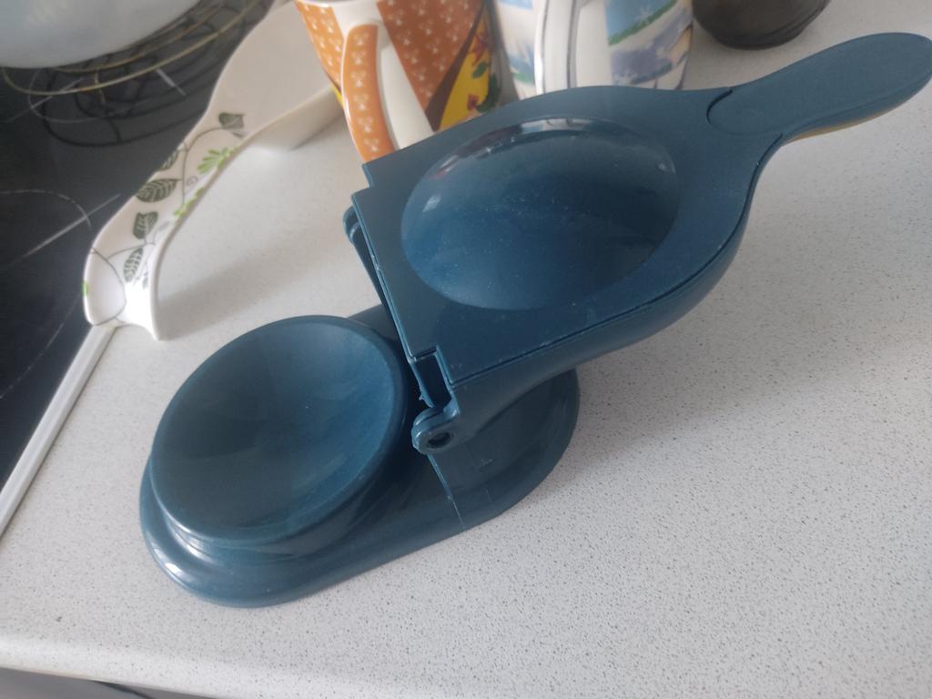 Der Mechanismus besteht aus leichtem Kunststoff. Ich habe versucht, Pelmeni zu formen. Nun, das Ergebnis hat mich nicht sehr zufrieden gestellt: Die Teigplatte wird nicht dünn genug gequetscht, und die Platte, die ich nach mehrmaligem Pressen doch etwas dünner gequetscht habe (die von mir gewünschte Dicke konnte ich mit dem Gerät nicht erreichen), schloss sich nicht vollständig. Mein Fazit ist also: Ich werde damit keine Pelmeni zubereiten, weil die Gefahr besteht, dass die Füllung beim Kochen ins Wasser gelangt. Aber zum Braten in Öl oder zum Backen im Ofen denke ich, ist es geeignet. Ja, Hefeteig konnte ich nicht ausrollen