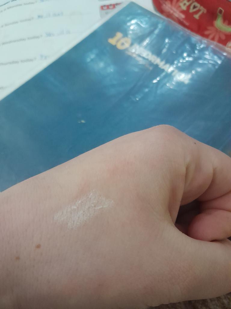 Vom Aussehen her wie weiß, aber wenn man es ein wenig verreibt, ist es wie ein Highlighter, aber nicht so wie auf dem Foto... Wahrscheinlich wurde das Falsche geschickt....