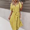 Frauen Blumendruck Langes Kleid Vintage Verband Einreiher V-ausschnitt Strandkleider Damen Boho Kurzarm Knopf Robe Vestidos