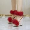 Damenschuhe, modisch, Stroh, lässig, elegant, Pelz, Keilabsatz, Feensandalen, Serie 10363, 15 cm Absatz, 5 cm Plattform, LFD