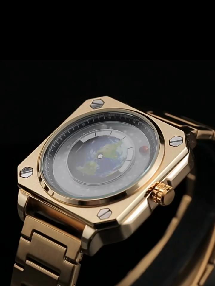 Concept Wandering Earth Pattern Watch Herren-Armbanduhr, quadratisch, blauer Planet, drehbar, Edelstahl, wasserdicht, Quarzuhrwerk