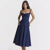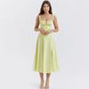 Frauen Y2k Square Neck Lace Trim Langes Kleid Low Cut Ärmelloses Bustier Midi Kleid Ausgehen Spaghetti Träger Sommerkleid