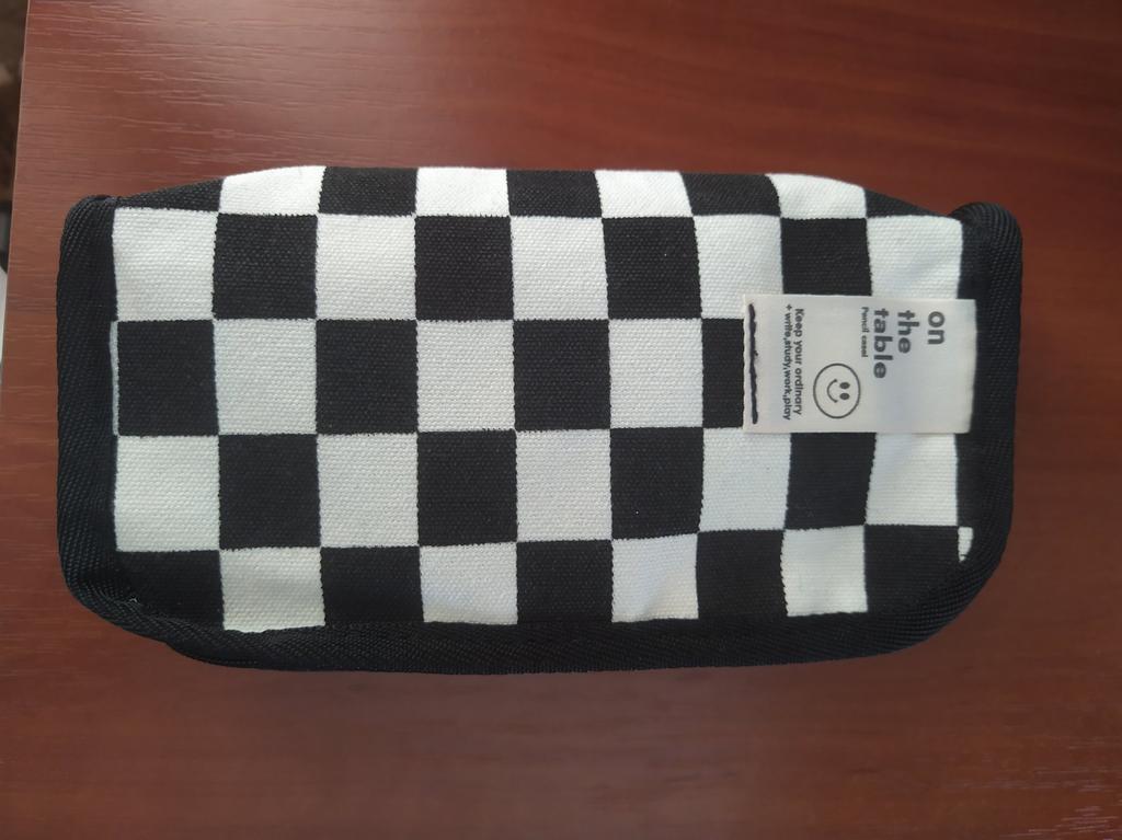 Bleistiftbeutel aus Segeltuch, großes Fassungsvermögen, viel Stauraum, Schachbrettmuster, einfaches Design zur Aufbewahrung von Schülerbriefpapier.