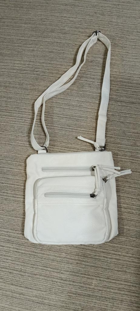 Sehr bequeme Handtasche aus hochwertigem Kunstleder. Viele Taschen, alle Reißverschlüsse funktionieren. In das Hauptfach passen eine Geldbörse, eine Kosmetiktasche und ein Handy. Es gibt ein Innenfach mit Reißverschluss. Die Farbe ist weiß. Sie können die Länge des Riemens einfach anpassen.