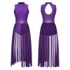 Ärmelloses Lyrical-Tanzkleid mit Schlüsselloch-Rücken für Damen, Bühnenkostüm, Strass-Split-Patchwork-Trikot-Kleider
