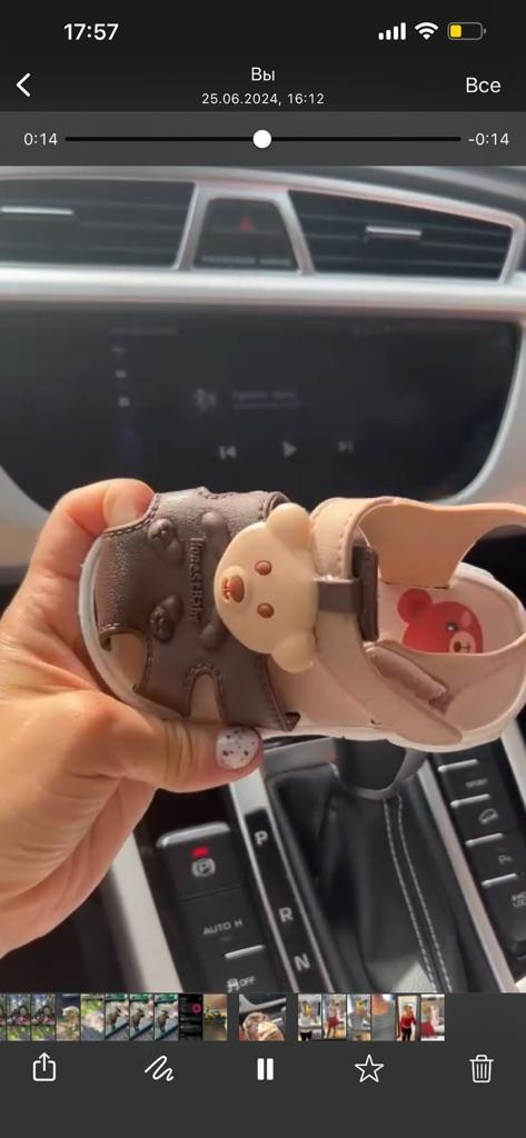 Komplett aus Gummi gefertigte Sandalen für den Sommer, die das Baby auch im Wasser tragen kann. Sie fallen eine Nummer zu klein aus. Es gibt einen Geruch, aber ich denke, er wird verschwinden.