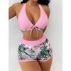 Sexy Halter Bikini Set Kurzen Badeanzug Frauen Hohe Taille Bademode Weibliche Gedruckt Badegäste Schwimmen Baden Badeanzug Bademode