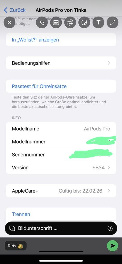 2 jahre garantie appel care Orginale ladekabel Super klare telefonierung Qualität super laut Alle geräuche fundiniert Wo ist einstehlung an airpods 3D audio Super Bass Perfekt te Kopfhörer Lange bariedauer zeit Logo schrift gibst nicht Nur Geräusche erkenung gibst nicht