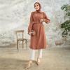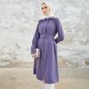 Lange Damentunika mit Gürtel und Stein auf der Schulter