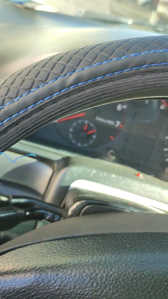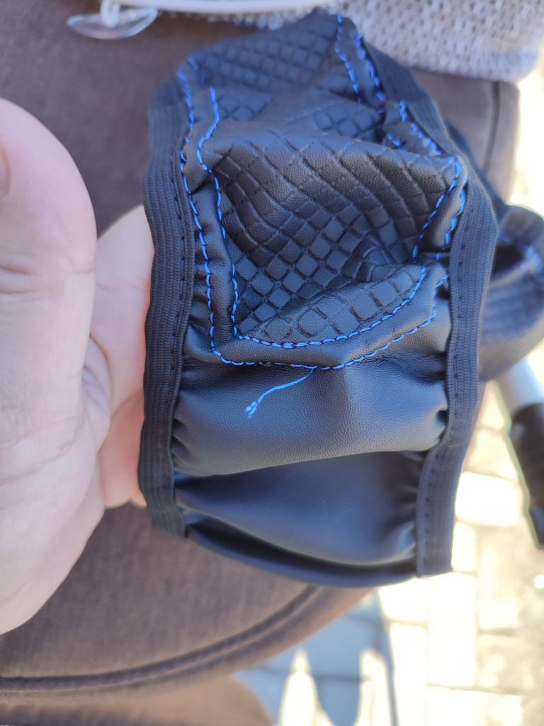 Beim Aufziehen auf das Lenkrad knirschte es, ich dachte, es würde brechen, es hält zwar fest, aber es stehen viele Fäden heraus