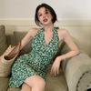 Merkmale: Damen, V-Ausschnitt, Neckholder, geblümt, A-Linie, kurzer Rock, Hüften, dünn, Hosenträger, Kleid