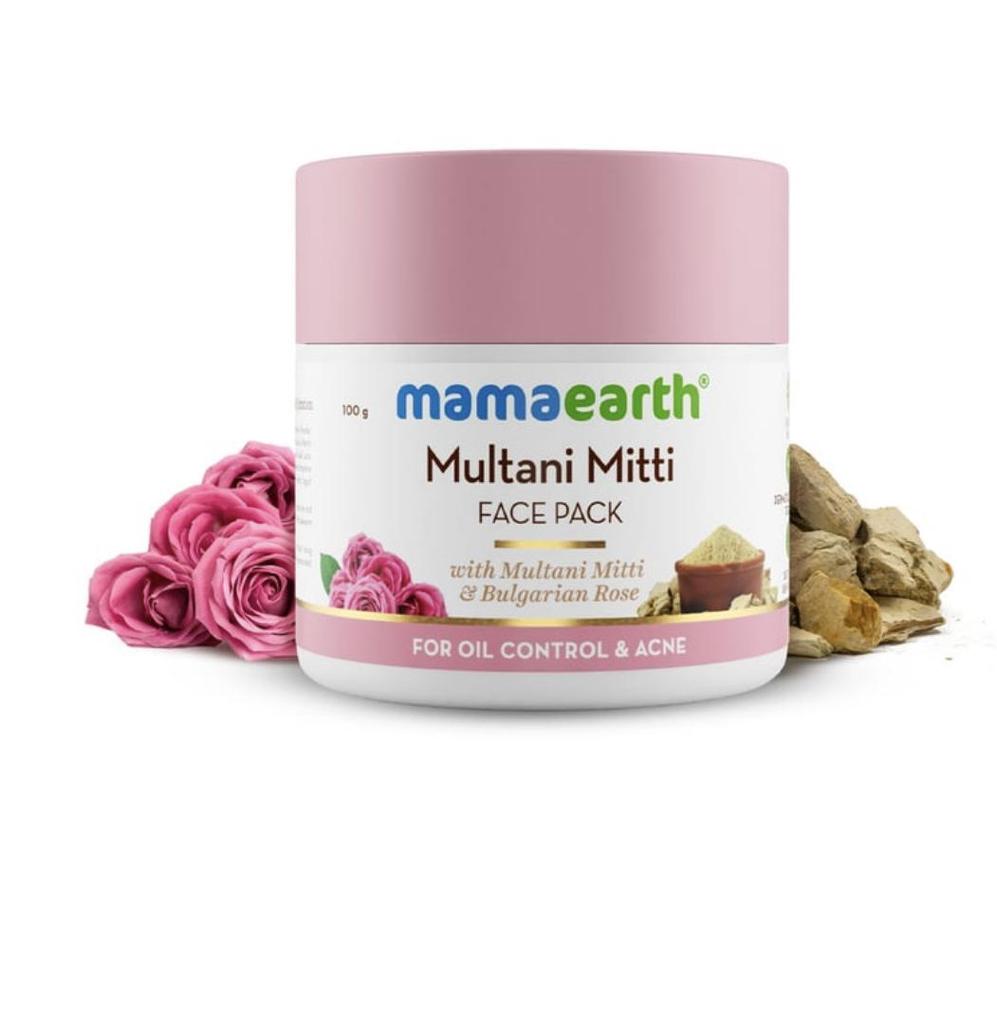 Mamaearth Multani Mitti Gesichtspackung mit Multani Mitti und bulgarischer Rose zur Ölkontrolle und Akne – 100 g