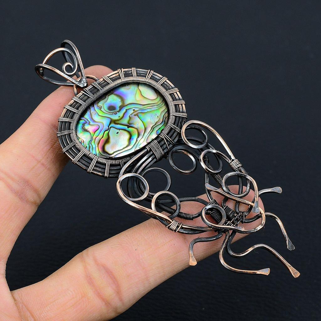 Abalone-Muschel-Edelstein, Kupferdraht, handgefertigter Anhänger-Schmuck