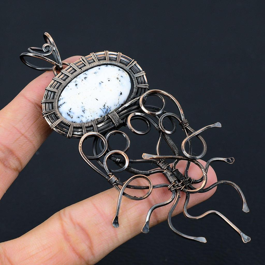 Dendriten-Opal-Edelstein, Kupferdraht, handgefertigt, Designer-Anhänger, Schmuck, Geschenk