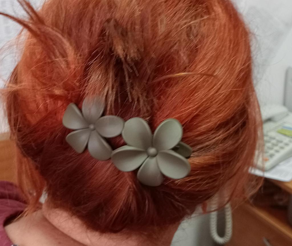 Es handelt sich nicht um die Farbe, die auf dem Bild des Verkäufers „Kaffee“ zu sehen ist. Der Clip, den ich erhalten habe, ist grün-grau. Aber mir gefällt, wie es befestigt wird. Es ist häufiger für Haare. Beim ersten Versuch auf dem Bild wirkte die Frisur etwas unordentlich, aber das lässt sich lösen, es besteht nicht aus dem Clip. Allerdings hätte mir die Farbe auf dem Bild gefallen, sie würde besser zur Haarfarbe passen.