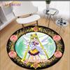 Anime Sailor Moon Print Teppich Teppiche Runder Teppich für Wohnzimmer Bodenmatte Flanell Anti-Rutsch-Matte für Kinder