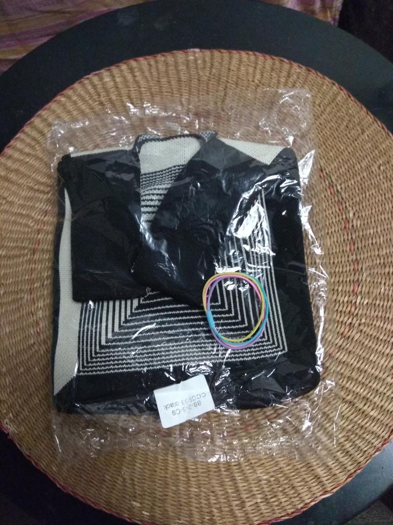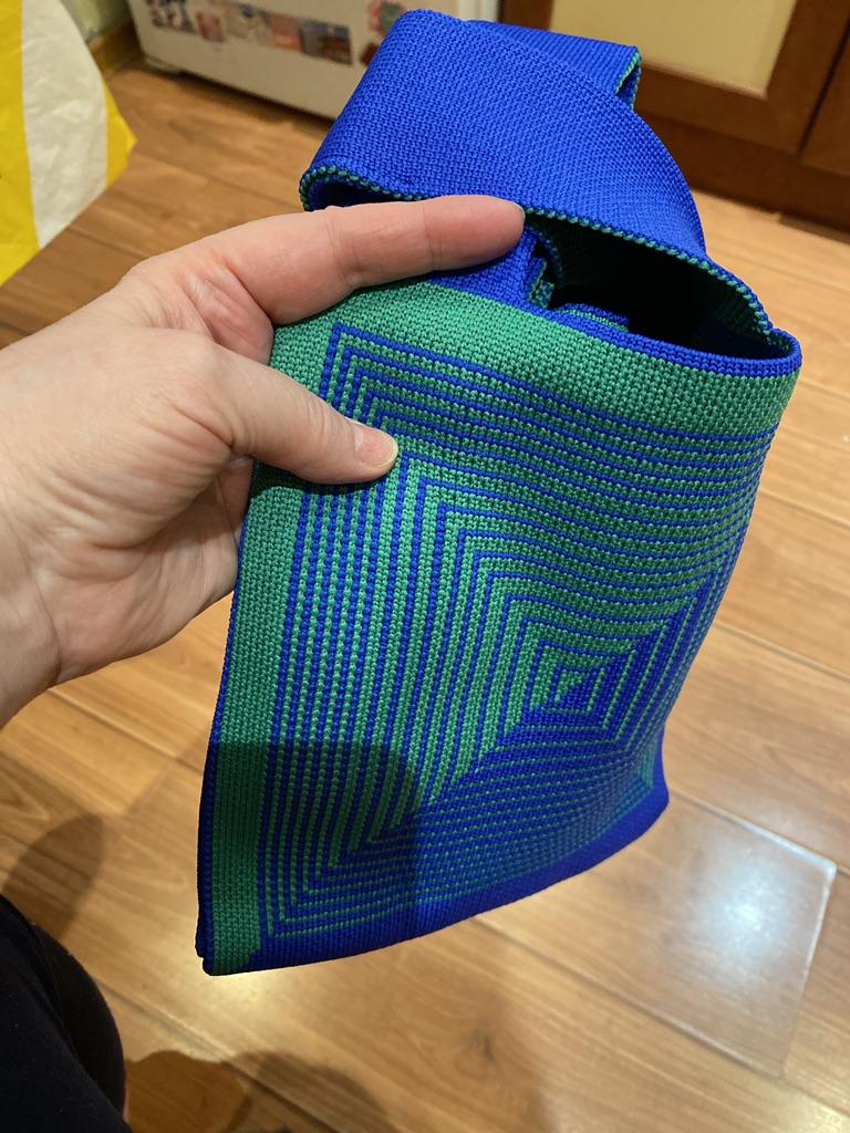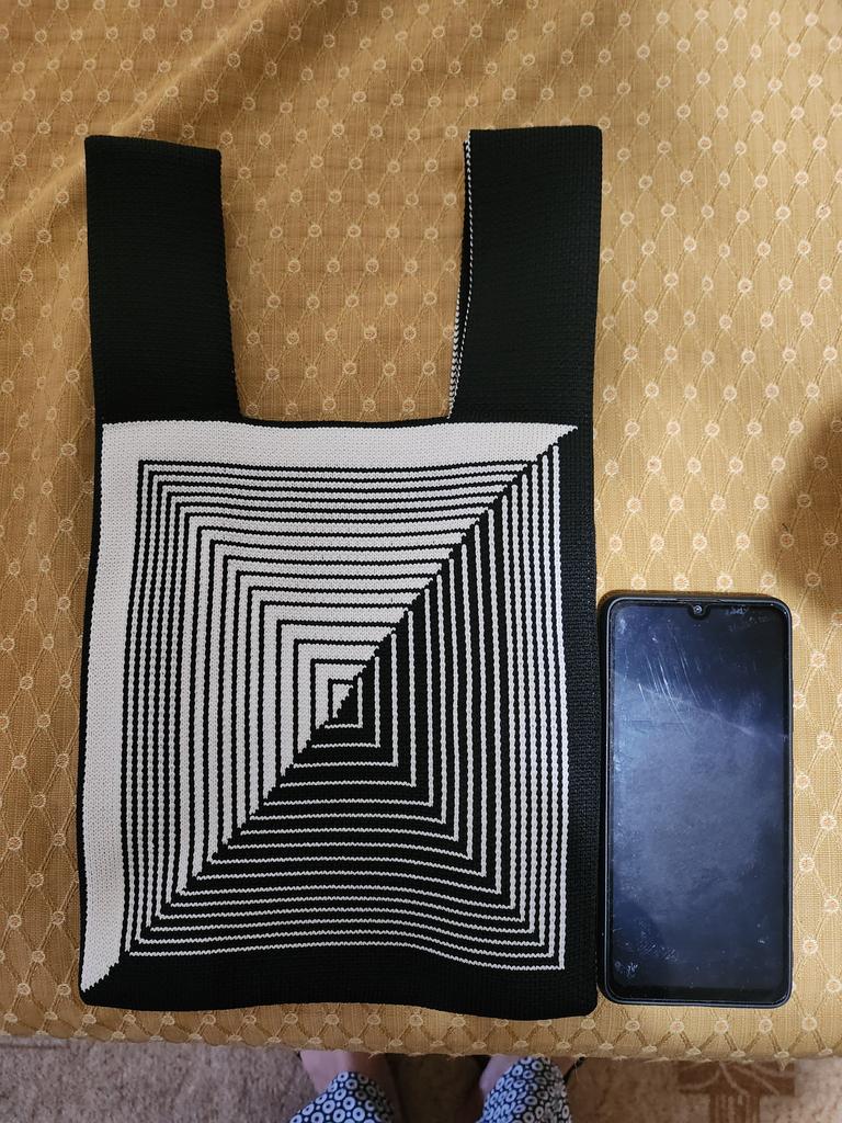 Gutes Stricken. Ich habe es für Winter-„Outfits“ genommen. Anstelle einer Handtasche oder Tasche 😝 Es riecht immer noch ein wenig nach Gummi