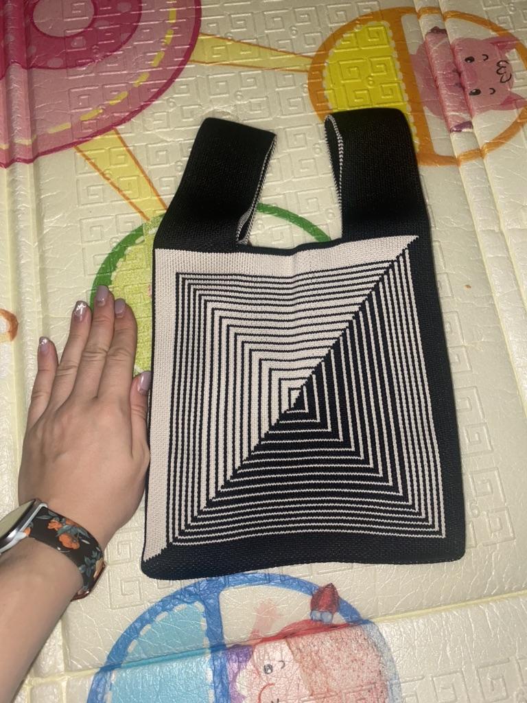 Yogodlns Handgemachte Strickhandtasche für Damen, kleine Knoten-Handgelenktasche, japanische lässige, breite Streifen, karierte Shopper-Tasche, wiederverwendbare Studenten-Umhängetasche