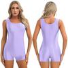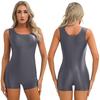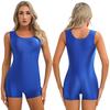 Damen-Overall, glänzend, ärmellos, kurz, einfarbig, dehnbar, U-Ausschnitt, Bodysuit, Badeanzüge