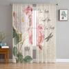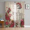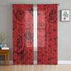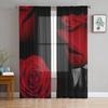 Vorhänge mit rotem Blumen- und Pflanzenmotiv, drapieren, transparenter Tüll, Heimdekoration, Wohnzimmer, Schlafzimmer, Cortinas, Chiffon-Fenstervorhänge