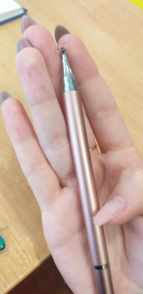 Ein gutes Tool für diejenigen, die gerne auf einem Telefon oder Tablet zeichnen, zeichnen und malen, und außerdem können Sie es auf einem Tablet spielen, ohne Ihre Finger zu benutzen 🔥 Auf der einen Seite befindet sich ein Stylus und auf der anderen ein blauer Kugelschreiber. Gute Qualität. Beide Spitzen sind mit Kappen verschlossen. Ich habe mir noch eins in Gold bestellt, meine Tochter hat dieses genommen.