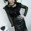 Damen Top Neue Transparente Aushöhlen Rüschen Bluse Spitze Tops Sexy Langarm Mode Villus Shirt Frauen Kleidung