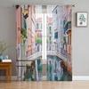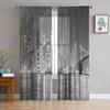 Hof Stadt Nacht Ansicht Tüll Vorhänge für Wohnzimmer Schlafzimmer Küche Dekor Transparent Chiffon Sheer Voile Fenster Vorhang