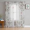 Vintage-Blumen-rote transparente Voile-Vorhänge für Wohnzimmer, Schlafzimmer, Küche, Dekor, moderne Streifen, transparente Tüll-Fenstervorhänge