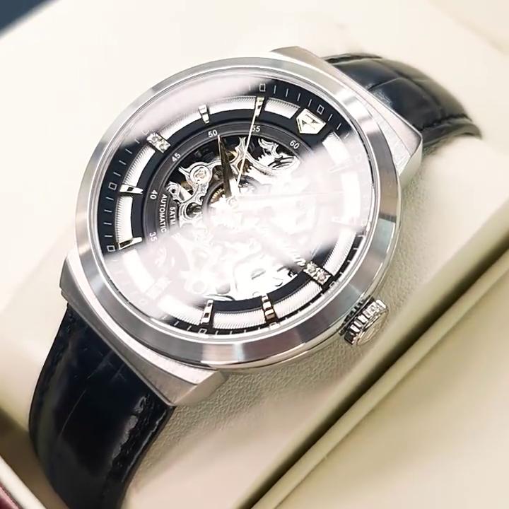 JINSHIDUN-Neue Business- und Freizeit-Herrenuhr Automatische mechanische Uhr Hohlleder High-End-Uhr