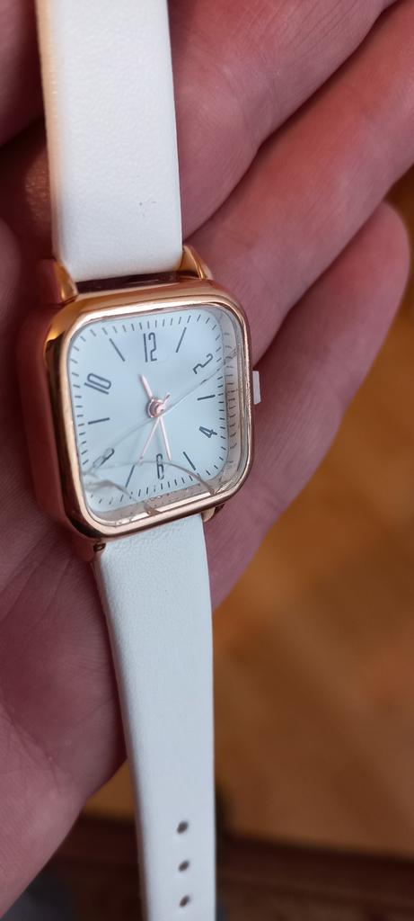 Die Uhr ist sehr schön, ich habe sie wegen ihres Aussehens geschätzt, aber erst spät bemerkte ich, dass das Glas zerbrochen war.