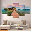 5 Panels Landschaft Holzbrücke zur Insel Leinwand Malerei Natur Poster und Drucke Wandkunst Bilder Home Decor Kein Rahmen