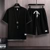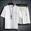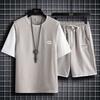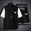 Herren Sommer 2PC Set Waffel Stoff Gefälschte Zwei Stücke T-shirt und Shorts Casual Sport Anzug Atmungsaktive Mode Männliche Outfit set