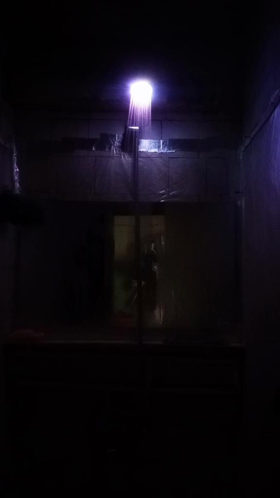 Alles funktioniert. Die Farben wechseln zufällig. Die Helligkeit hängt von der Stärke des Wasserdrucks ab.