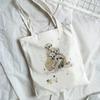 Wiederverwendbare Damen Canvas One Shoulder Cartoon Printing Einkaufstasche Baumwolle Umweltfreundliche Einkaufstasche Damen 2022 Student Handtasche T