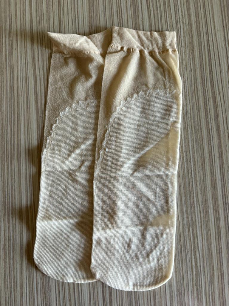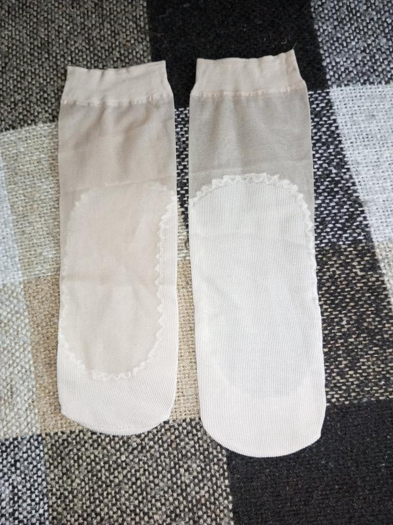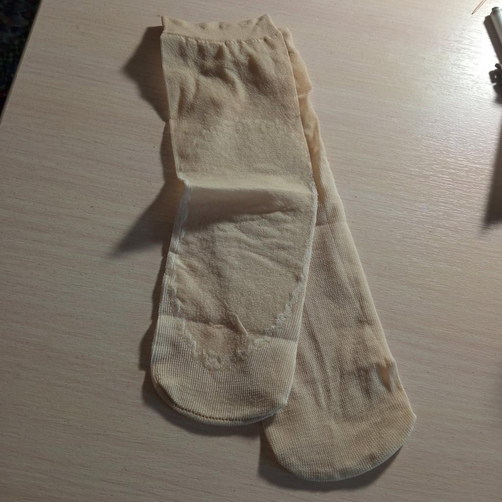 Dünne Söckchen mit verdickter Sohle. Angenehm, Farbe beige.