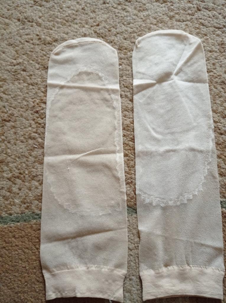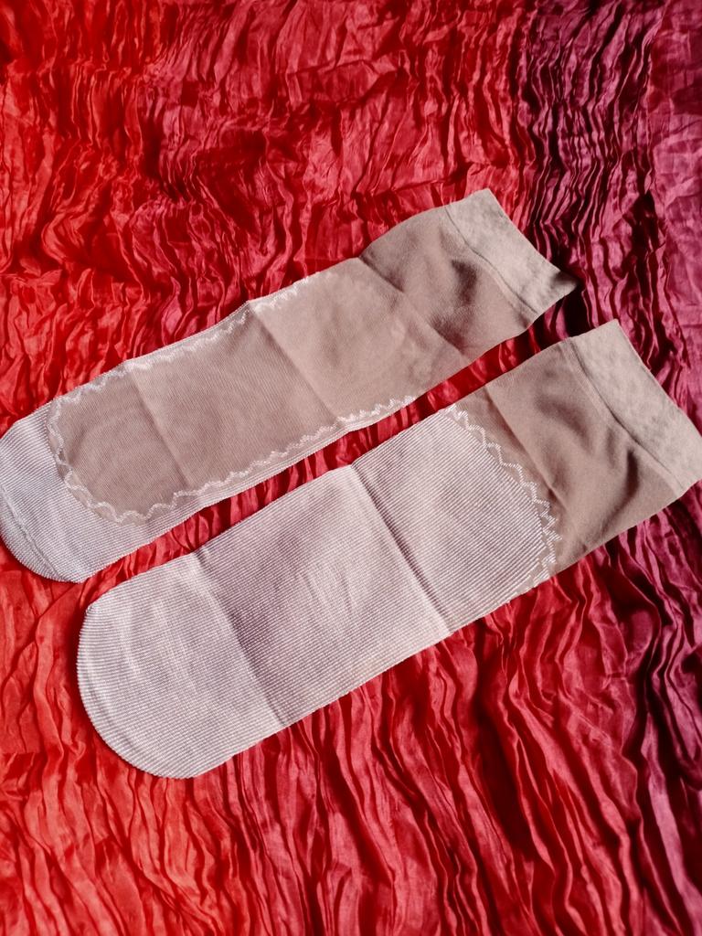 Die Socken sind super! Sie sehen am Fuß wunderschön aus. Zart, kühl. Ich werde mehr kaufen. Ich empfehle sie.
