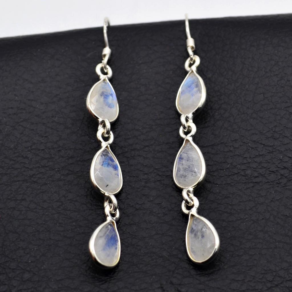 Natürlicher Mondstein handgefertigter Ohrring 925 Sterling Silber Schmuck Damen Ohrhänger