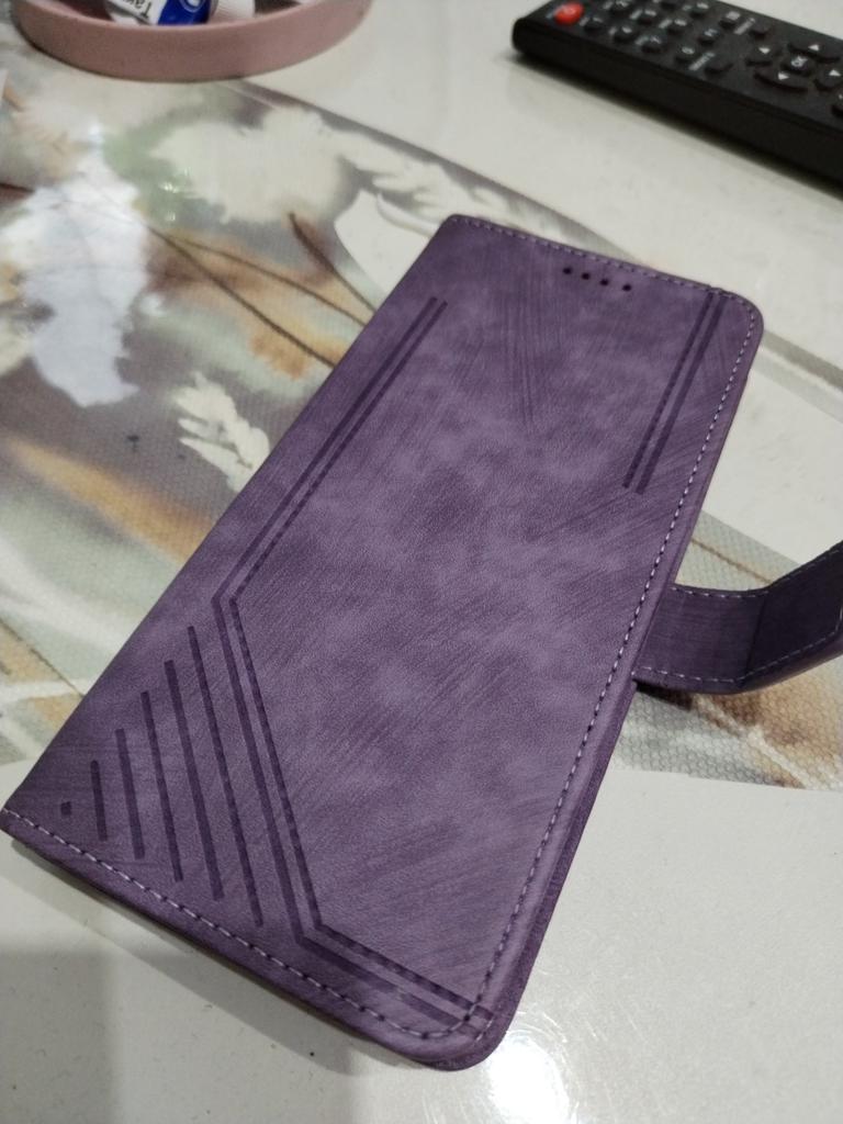 Geprägte geometrische Linien Einfarbig Leder Handytasche Hülle Buchständer für Oppo Vivo Huawei Moto Infinix Tecno Magnetkartensteckplatz Mädchen Flip Cover