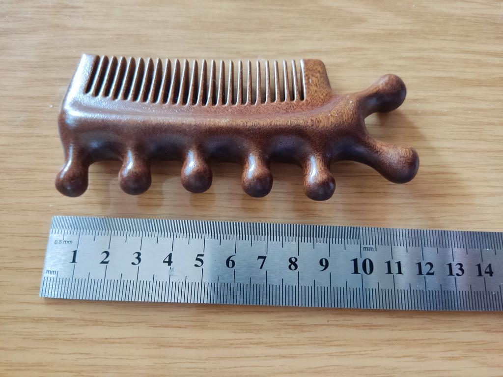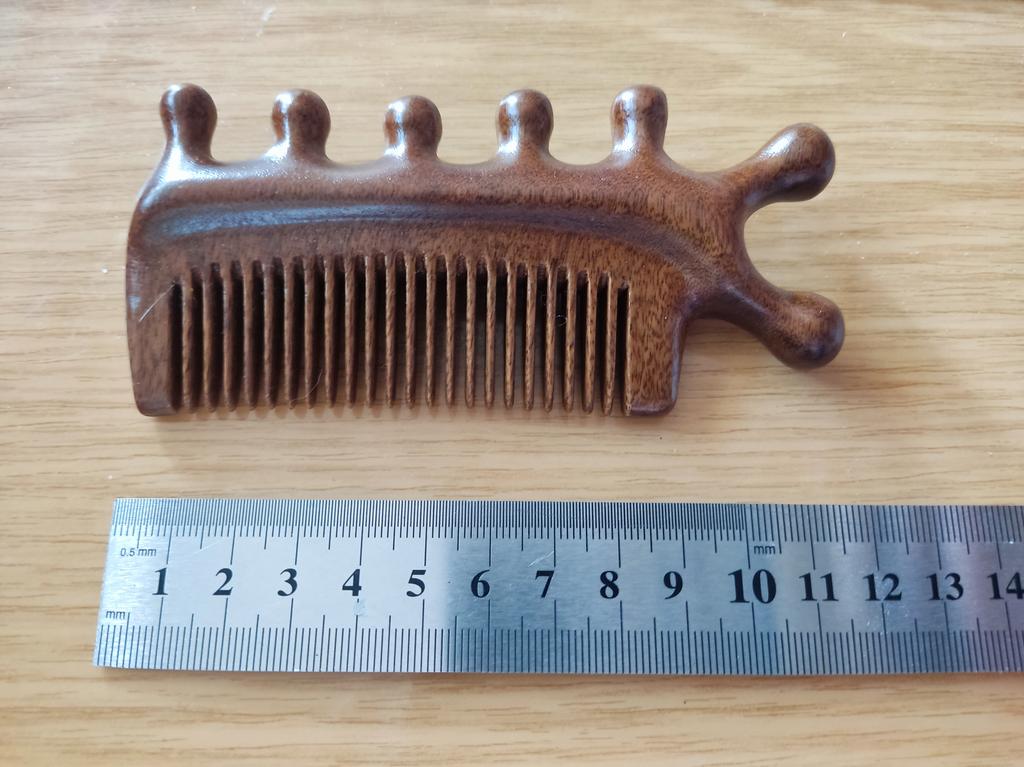 Es ist für die Massage des Körpers/Gesichts geeignet, aber ich bin noch nicht dazu gekommen, die Kopfhaut zu massieren. Als Kamm für meine Haare sind die Zähne zu kurz und aufgrund der stark abgerundeten Enden nicht sehr angenehm. Klein, passt in meine Handfläche.