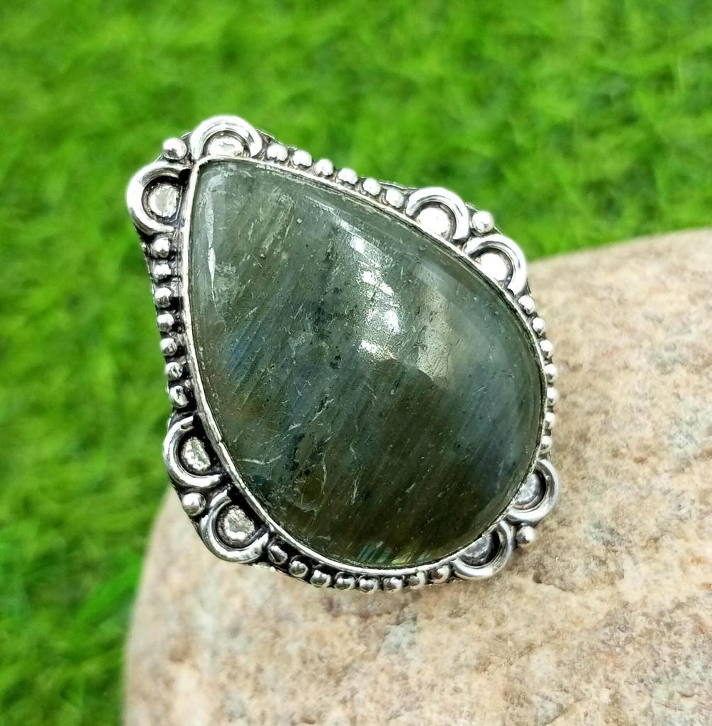 Labradorit-Edelstein, 925er-Sterlingsilber vergoldet, 1-teiliger Designer-Ring
