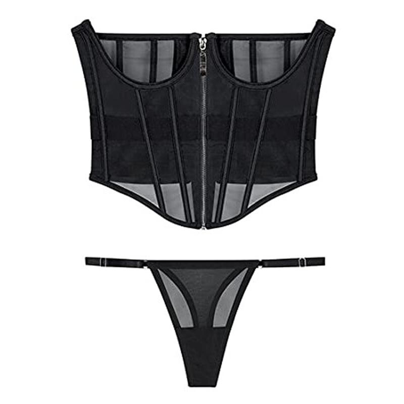 CINOON Schwarze Body-Shapewear für Damen, Gothic-Kleidung, Unterbrust-Taillenmieder, Trainer, Spitze, elastisch, sexy Fishbone-Korsetts und Bustier