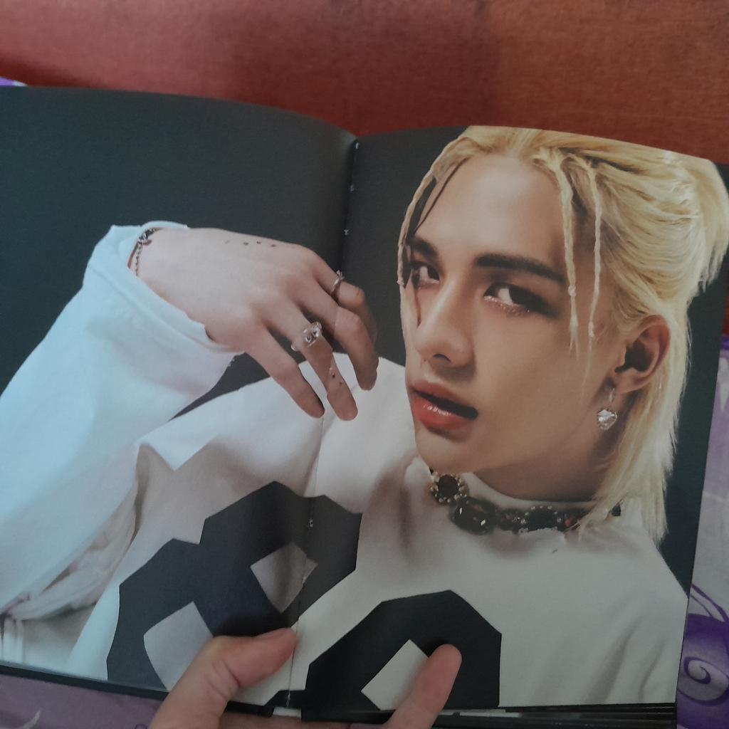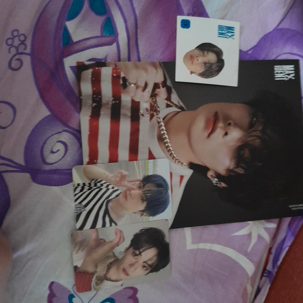 Ich habe es geliebt, es ist wunderschön!!!! Das Problem ist, dass es mit umgeknickten Ecken und einer Delle unten ankam, aber ansonsten alles gut!!!! Ich habe alle Seungmin-Photocards bekommen, ich möchte Bang Chan bekommen 😭😔 und die Postkarte und das Polaroid sind von Han 😁. Vielen Dank für die Geschenk-Photocard von Hollow😊🫶🏼