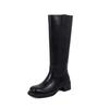 Krazing Pot Echtes Leder Frühling Winter Schuhe Dicke Med Heels Reitstiefel Retro Mode Frauen Oberschenkel Hohe Stiefel