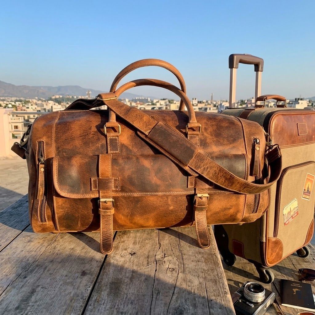 Leder-Reisetasche, handgemachter Leder-Weekender, Turnbeutel, Urlaubs-Reisetasche, Reisetasche, Übernachtungstasche, Leder-Reisetasche
