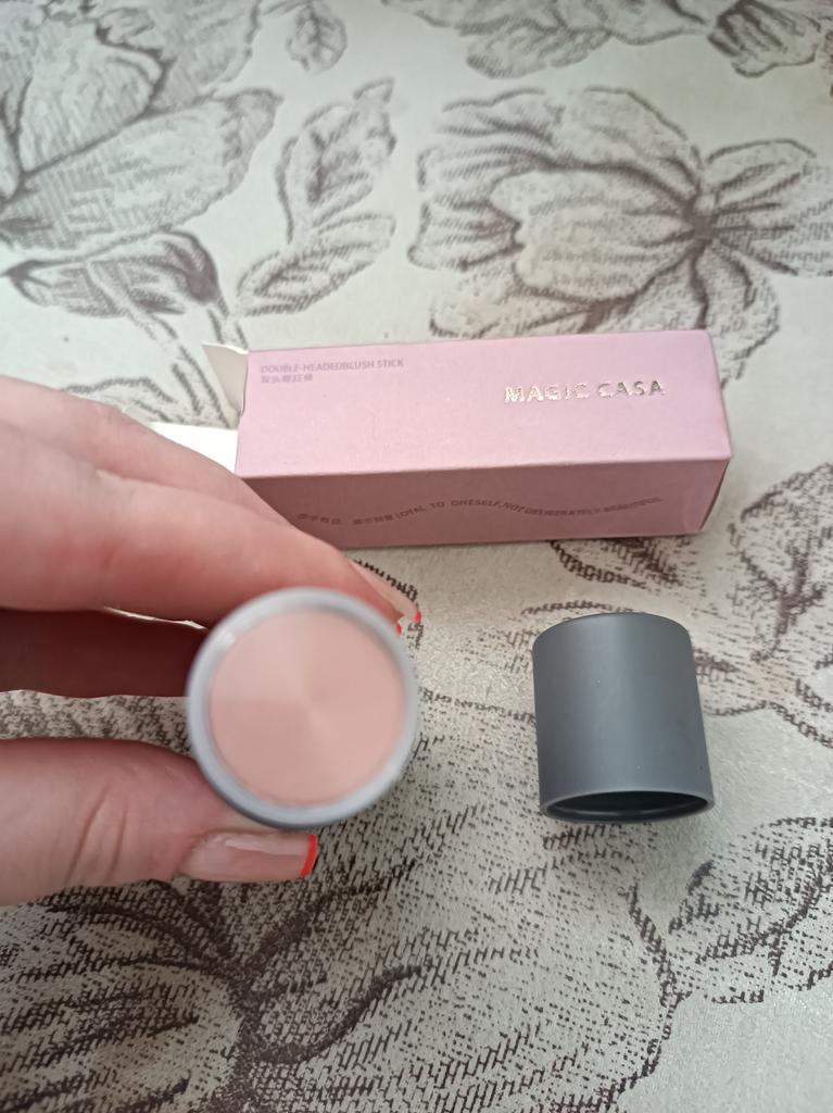 Ladung für 0,1 € gekauft Praktisch in der Anwendung, auf der einen Seite befindet sich ein Creme-Rouge in einem Stift, auf der anderen Seite befindet sich ein Schwamm zum Verblenden. Alles ist wie im Laden, oben mit Folie versiegelt, in einem schönen Glas, alles funktioniert und ist im Allgemeinen nicht schlecht. Ich empfehle es.