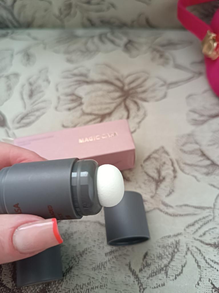 Guter Stick, auf der anderen Seite befindet sich ein Mini-Schwämmchen. Bequem zu verwenden, es ist wenig Produkt enthalten (ich habe nicht alles vollständig gezeigt), aber es reicht für eine Weile, hält gut. Kam ca. in einem Monat an